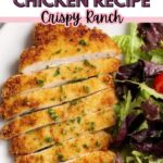 On a plate, combine the ranch seasoning mix with Italian style breadcrumbs. Crack your eggs into a shallow dish and beat lightly with a fork. These simple steps build the flavor and the perfect crispy crust that sticks to the chicken like a dream.