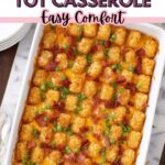 This hearty Chicken Tater Tot Casserole combines crispy bacon, tender chicken, creamy cheese sauce, and crunchy tater tots for a comforting and satisfying meal perfect for family dinners.