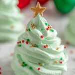 - Decorate: Optionally add round sprinkles as ornaments and place star sprinkles on top of each meringue tree for a festive look.