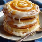 - Serve: Drizzle the warm pancakes generously with the cream cheese glaze. Serve immediately and enjoy your cinnamon roll pancakes warm.
