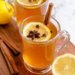 - Add Garnishes: Drop the clove-studded lemon slice into the mug along with a cinnamon stick and/or a star anise for extra warming flavor and aroma.