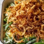 Absolutely! Store-bought French fried onions are a decent substitute to save time. However, making your own really elevates the dish with fresher, crispier texture and better flavor. If short on time, I recommend making the onions first and storing them in an airtight container—they crisp up beautifully when baked on top.