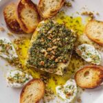 This Grilled Feta with Chimichurri and Pistachios recipe features a rich, melty block of feta cheese grilled to perfection and topped with a vibrant, herbaceous chimichurri sauce and crunchy roasted pistachios. It’s a flavorful appetizer or snack that pairs wonderfully with crackers or crostini.