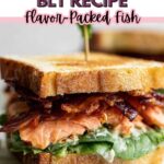 This Grilled Salmon BLT with Charred Scallion Mayo is a delicious twist on the classic BLT sandwich. Featuring perfectly grilled salmon seasoned with smoked paprika and herbs, crispy bacon, fresh lettuce, juicy tomatoes, and a flavorful charred scallion mayonnaise, all layered between toasted sourdough bread. A fresh and smoky sandwich perfect for lunch or a light dinner.