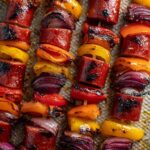 These Grilled Hot Honey BBQ Smoked Sausage Skewers combine smoky turkey sausage with sweet and spicy hot honey BBQ sauce, grilled to perfection alongside colorful bell peppers and red onions. Perfect for a flavorful and easy-to-make main course served over rice.