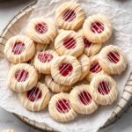Classic Jam Thumbprint Cookies are buttery, soft shortbread cookies topped with your favorite jam and a delicate almond glaze. Perfect for tea time or festive occasions, these cookies combine a tender crumb with a sweet, fruity center and a drizzle of sweet glaze for extra flavor and visual appeal.