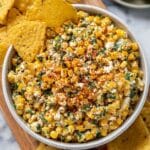 I usually don’t freeze this dip because corn’s texture can get a bit grainy after thawing. But if you want to try, freeze in a tightly sealed container for up to 1 month, and thaw overnight in the fridge before reheating gently.