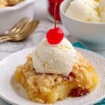 - Serve: Serve warm topped with a scoop of vanilla ice cream and a maraschino cherry for a classic finish. Enjoy your pineapple dump cake!