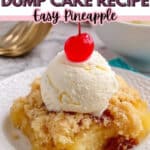 This easy and delicious Pineapple Dump Cake is a crowd-pleasing dessert made by layering crushed pineapple, yellow cake mix, brown sugar, and melted butter, then baking until golden and bubbly. Perfectly sweet and fruity, it’s a no-fuss recipe that results in a warm, gooey cake great served with vanilla ice cream and a cherry on top.