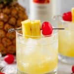 - Garnish and enjoy: Add a skewer of fresh pineapple pieces as garnish on each glass and serve immediately for best flavor.
