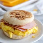 Delicious and easy sheet pan egg breakfast sandwiches perfect for meal prep. Fluffy baked eggs mixed with milk, topped with melted cheese, served on toasted English muffins with your choice of bacon, Canadian bacon, or ham for a hearty morning meal.
